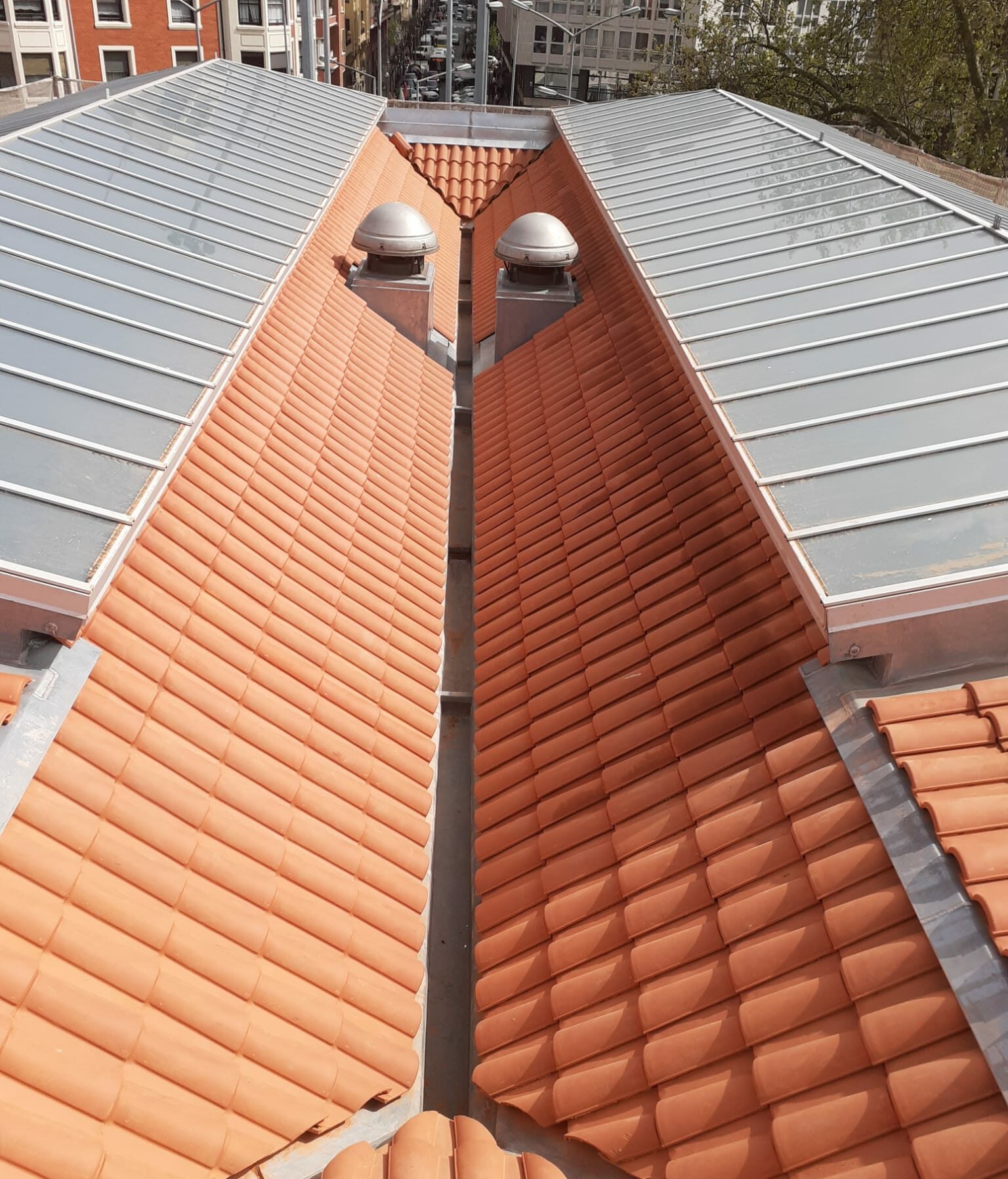 Para la ejecución de esta reforma de cubierta se ha utilizado Teja cerámica Cazorla de BMI y Zinc natural de VMZINC.