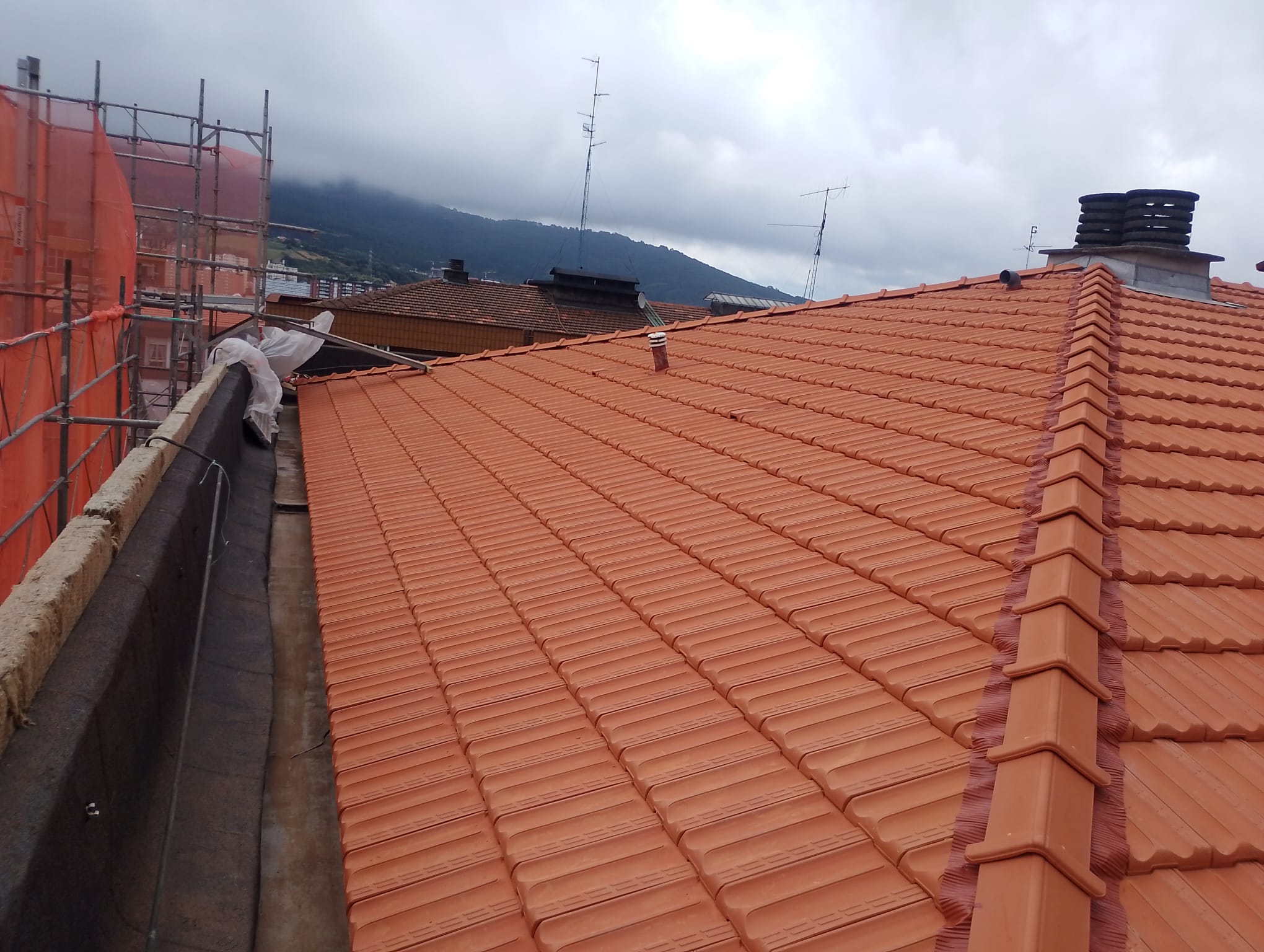 En este proyecto, se ha llevado a cabo la rehabilitación energética de la cubierta de un edificio de viviendas. La intervención ha incluido la sustitución completa del recubrimiento cerámico en los faldones inclinados, junto con la instalación de un aislamiento térmico con lana de roca de 10 cms. Además, se ha garantizado la estanqueidad de la cubierta con la incorporación de una lámina impermeable y transpirable.
